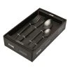 Set contains formal place setting for ten: 10 Dinner Knives, 10 Dinner Forks, 10 Entree Knives, 10 Entree Fork, 10 Dessert Spoons, 10 Soup Spoons, 10 Teaspoons
